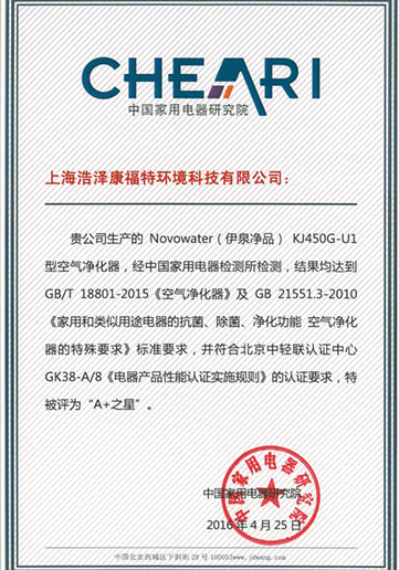 浩凈澤環保設備 明星產品榮譽證書