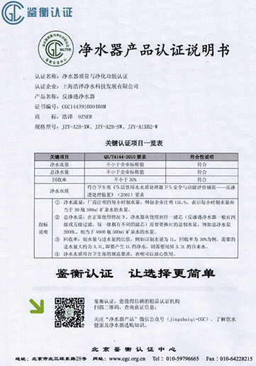• 凈水器產品認證