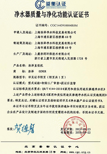 • 凈水器質量與凈化功能
